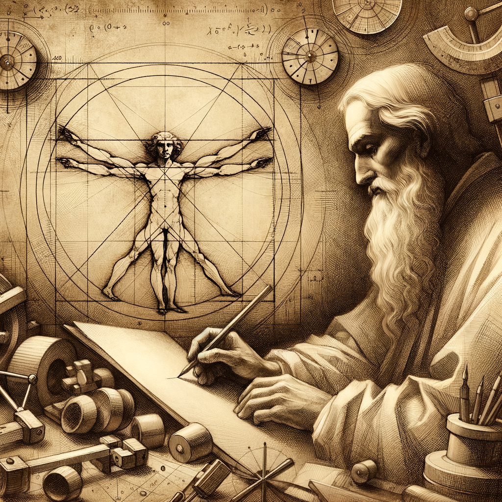 > Nel 1498, Leonardo da Vinci realizza il celebre disegno dell’“Uomo Vitruviano”, studiando il trattato di Vitruvio De Architectura. La figura inscritta nel cerchio e nel quadrato non è soltanto un esercizio di proporzione, ma una mappa ontologica: l’uomo come misura di tutte le cose, ponte tra la terra e il cosmo.